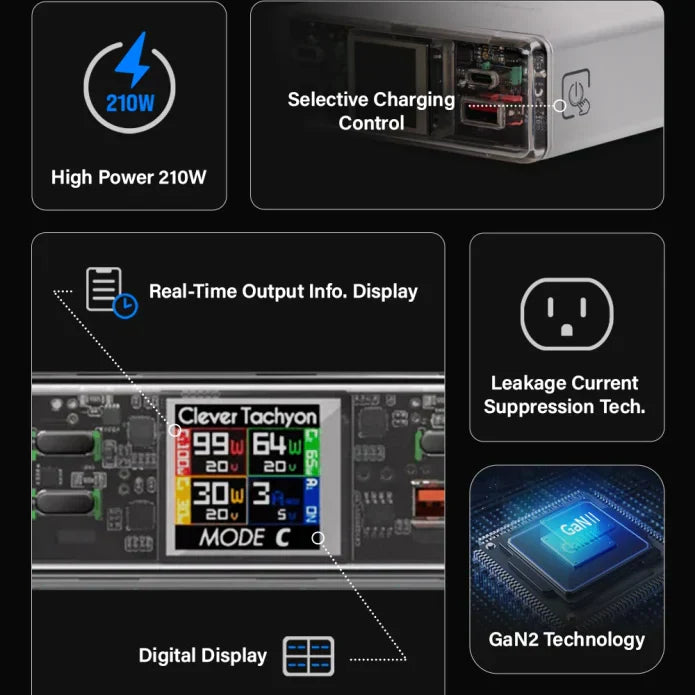 Clever:210W GAN Fast Laptop Charging Block with Display