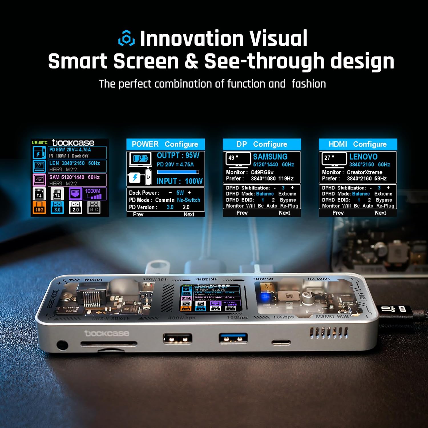 Smart USB-C Hub--The ultimate smart hub for your workspace. Adjustable function display combined with versatile ports and connections, you can easily expand your laptop or desktop computer into a complete workstation.
